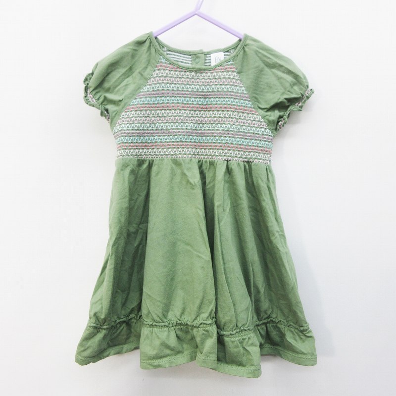 ベビーギャップ Baby Gap ベビー服 ワンピース 半袖 ラグラン 膝丈 シャーリング 綿 コットン 80 緑 グリーン系 キッズ 064 ベクトルパーク